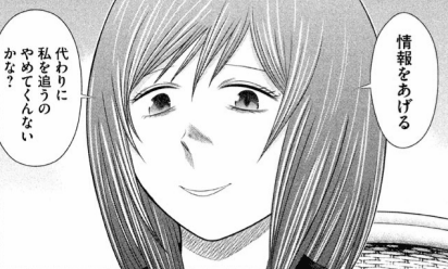 彼女の用件は自分への捜査を止めてもらう代わりに、犯罪発症者の情報を流すというものだった。3人では判断できず本部長に指示を仰ぐと、彼は暮井との取引に応じた。