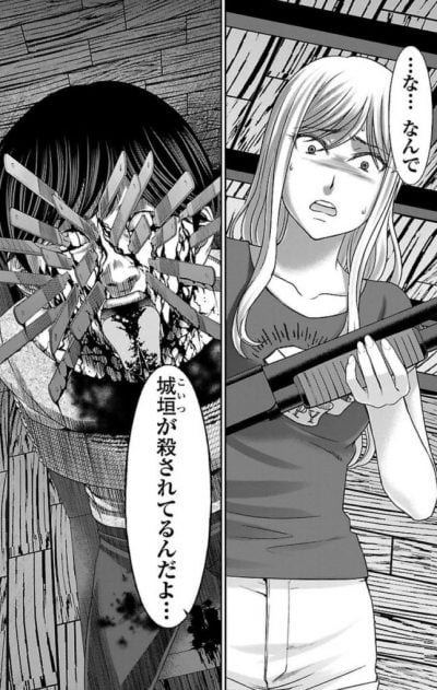 良くしてくれた三輪には隠し事をしたまま死にたくないと言った直後、彼女の頭は斜めに切り落とされて脳が覗き見えていた。