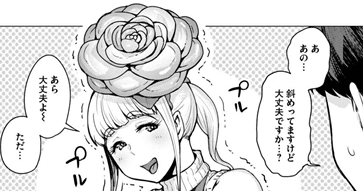 そこを通るうちに、一言二言挨拶を交わす仲になっていったのだが、よい天気が数日続いたある時、徐々に彼女の頭に乗っかっている花が日増しに巨大化していった。