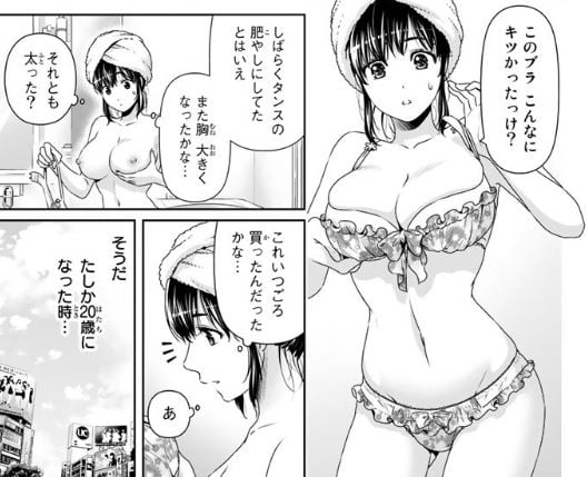 そんなキツクなった下着にまつわる思い出を思い出し、今のドロドロの三角関係に思いを馳せていると、中心人物の夏生が突然入ってきて、大きくなった胸を見られるのだった。