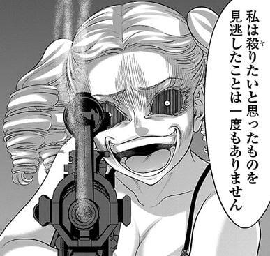 容赦なく連発してくる釘の雨になかなか近づけず、避けるのに必死でボロボロのゲス川を盾にして時間を稼ごうとしたが、婦人は躊躇わずにゲス川を撃ち殺した。