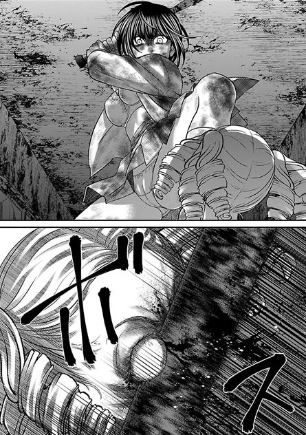 しかし真城はそのままゲス川を盾にしながら近づいて一撃お見舞いしたがそれほどダメージを与えられず、逆に銃創に指を突っ込まれてしまう。