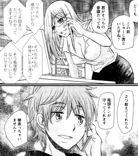 芦田が仕方なくシュージ側につくことに決めたその時、嘉門は尾頭の指示で芦田のフリをしてギバ側にメールを送ったのだと暴露した。