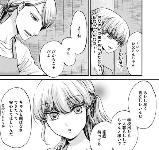 父親を邪険にしつつも、それは親離れして自立をしようとしているからで、そうして育ててくれた親を安心させたいのだというあいりの考えに、よしのはハッとした。