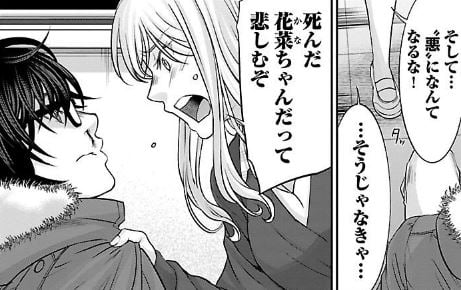 その直後、三輪に思いっきり殴られ、死んだ花菜のためにもそんなこと言うなと言われてしまう。