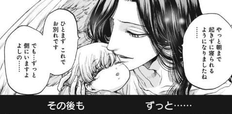 歩くようになり、言葉を覚えてたどたどしい会話ができるようになった3歳の頃、ようやく夜に目覚めることもなくって夜中に相手がいらなくなると、彼は目の前から姿を消して黒い姿になり、気づかれない場所で見守り始めた。