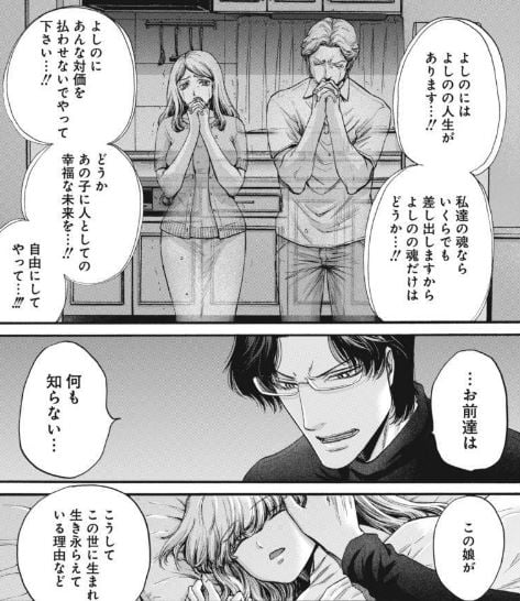 べリアルはよしのの寝顔を見ながら、彼女の両親の魂と言い争っていた。