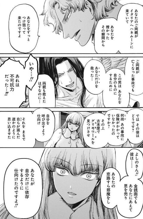 ベリアルがよしのを気にしているのを利用し、埃を被ったシャンデリアをよしのに落とし、ベリアルが彼女を助けざるを得ない状況を作った。