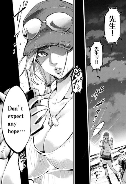 小早川が詳しく話そうとしたその時、金髪巨乳の女性が無線機を奪い、最後の言葉を残して無線機を海に捨ててしまうのだった。