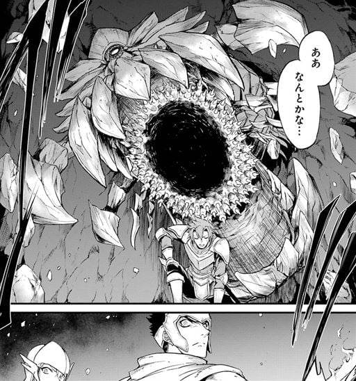 ハーフエルフを食い殺したロックイーターが大口を開け、戦士を飲み込もうとしていた。