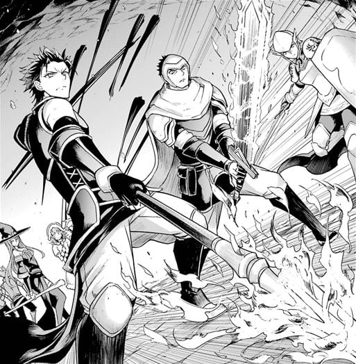大剣使いは自分たちだけでブロブとロックイーターを退治することに決め、見習い僧侶の少女に付与を頼み、同じく槍使いも魔女に頼んだ。