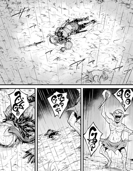 自分が倒したゴブリンの近くで激しい雨に打たれ、彼を仕留めたと思っているゴブリンは勝鬨をあげて踊り狂っていた。