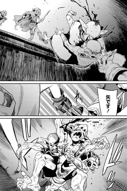 ここぞという時に待機している女神官も手近に落ちているゴブリンの矢を拾い、エルフに渡して協力する。
