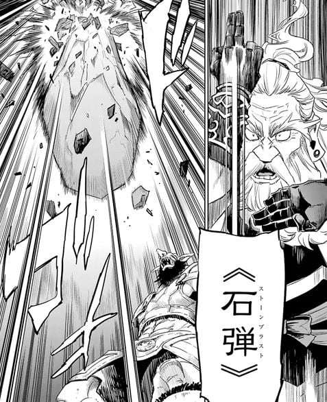 チャンピオンの真上には石弾が待ち構えていて、ドワーフが光が消えた瞬間を見計らって術を起動させた。