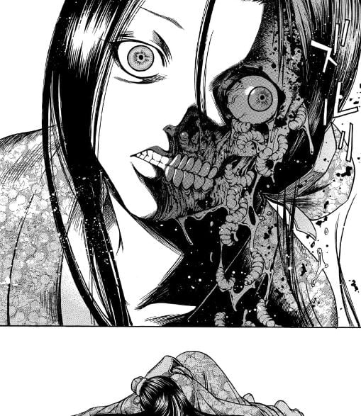 鳳仙がいきなりの抱擁に驚いている間に、野菊は顔の左側から蛆をぽとぽと落とし、あっという間に腐り落ちていくのだった。