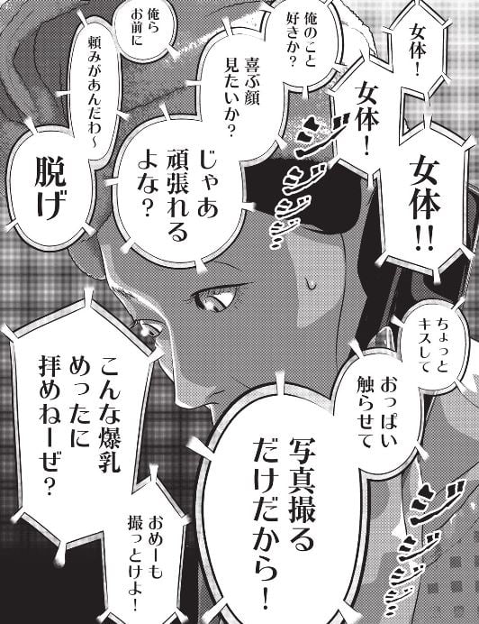 直後、若い男が「女体!」「爆乳!」「脱げ!」「キスしておっぱい触らせて写真撮るだけだから!」などという、ゲスな声で捲し立てた。