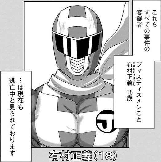 ジャスティスメンこと有村正義は、大量殺人の容疑者として指名手配された。