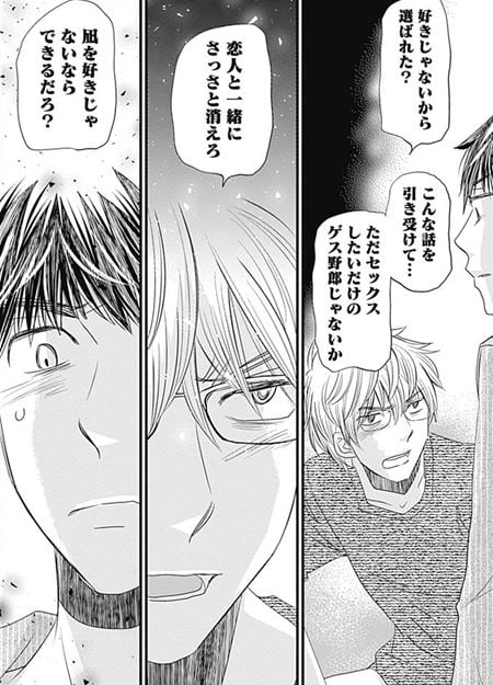 シャワーを浴びながらまたヤリ、石清水と別れた理由も聞いたが、凪が誰とも恋愛する気がないとまた分かっただけで、のめりこむほどにやるせなさが募るだけだった。
