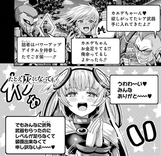 パーティーを組んでた男たちはあっさりカエデを見た目通りに女だと思い込み、リアルでニヤニヤしているのが見えそうなほど、カエデを甘やかして各種アイテムを貢いでいた。
