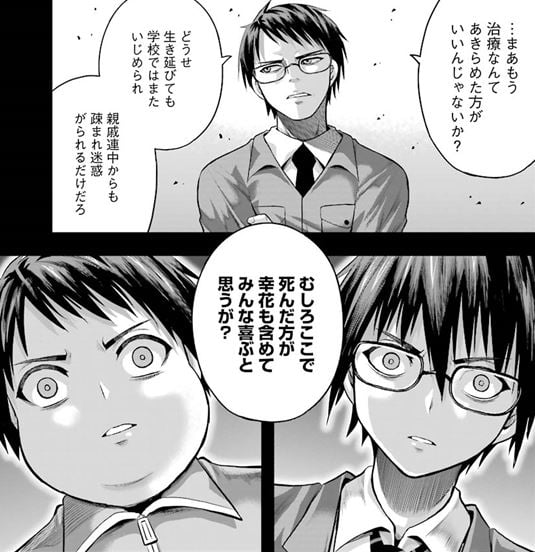 父に殺されると思った正輝は家から逃げ出したが、結局選んだのは自死だった。
