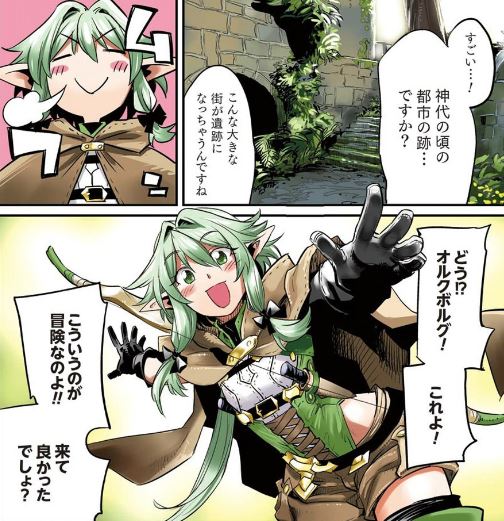 女神官が黒曜に等級アップして彼にお礼を言ったり、エルフたちと出会ってグルメに舌鼓を打ったり。