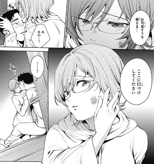 彼は自分を貶める礼儀も弁えるようになり、聖奴隷の善でございますと名乗り返すと、彼女は様付けではなく下の名前で呼んでくださいと敬語で返し、そっと彼を抱きしめた。