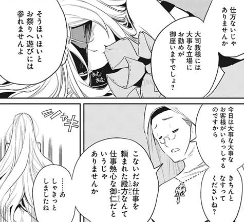 抱きしめた袋の先を甘噛みするほど納得いっていないのは同情できても、大司教ともなれば市井の祭りにホイホイ出歩けないのも道理。