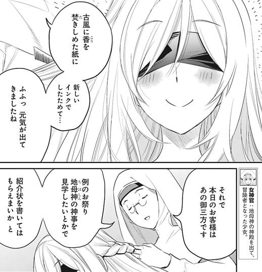 装備の新調かと訊かれた女神官は口ごもるが、意見はいるか?と訊かれればちゃんと必要ないことを意思表示できた。