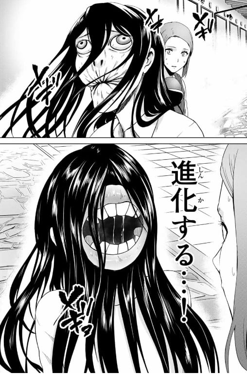 まるで昔話に出てくるような妖怪じみた進化を経た女は助けようとした麗の頭を掴み、巨大な口と歯で噛み千切ろうと襲いかかった。
