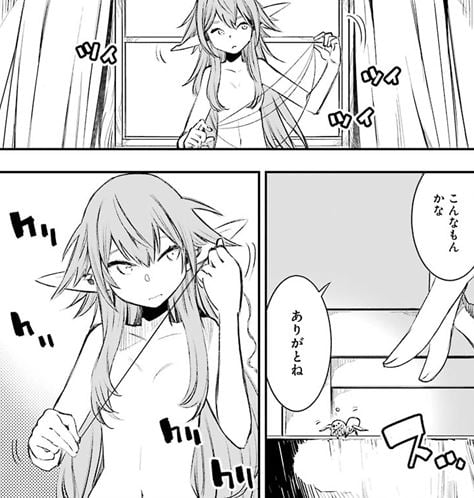 逆に受付嬢はエルフの洗濯物を眺め、下着が干してないのを指摘すると、なんと一枚も持っていないという。