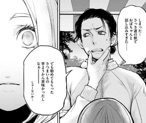 テンションが上がった男は矢継ぎ早に蓮澄城跡について質問を重ねてくるが、和子が何の知識もないバイトだと打ち明けると、またあからさまに落ち込んでバイクに戻っていく。