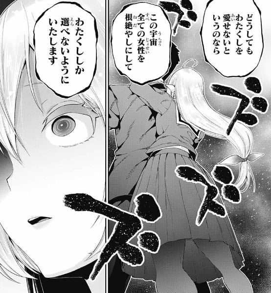 ゲンは当然結ばれることも二人で歩く未来もないし無理だとはっきり言うが、その拒否をちゃんと理解しつつ、逆に拒否を拒否できる強靭なメンタルを持っているのがキゥリプという、生まれながらの執着粘着女だった。