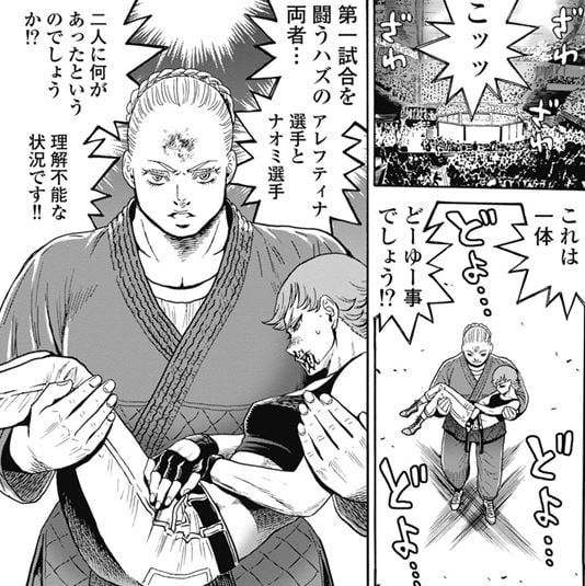 しかし、するりと躱されて背後を取られ、首と腕を掴まれた瞬間、確かに折られた未来が見え、情けなくも格闘技の試合中に悲鳴を上げて戦意喪失してしまうのだった。