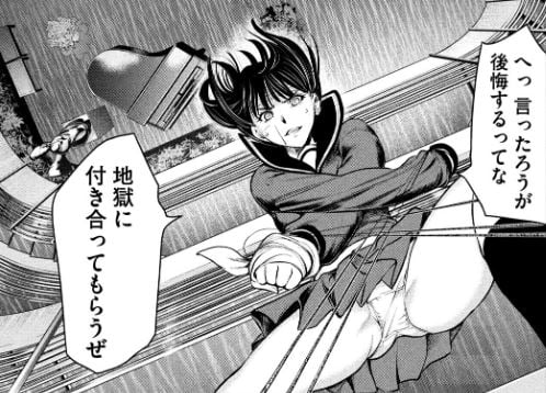 千歌を引きずっていく水野は、自分と同じようにここから1階に落として始末することに決め、順にメデューサ全員も同じように落として10個の血の花を咲かせ、部下たちの餞にしてやろうと粋なことを言い出した。
