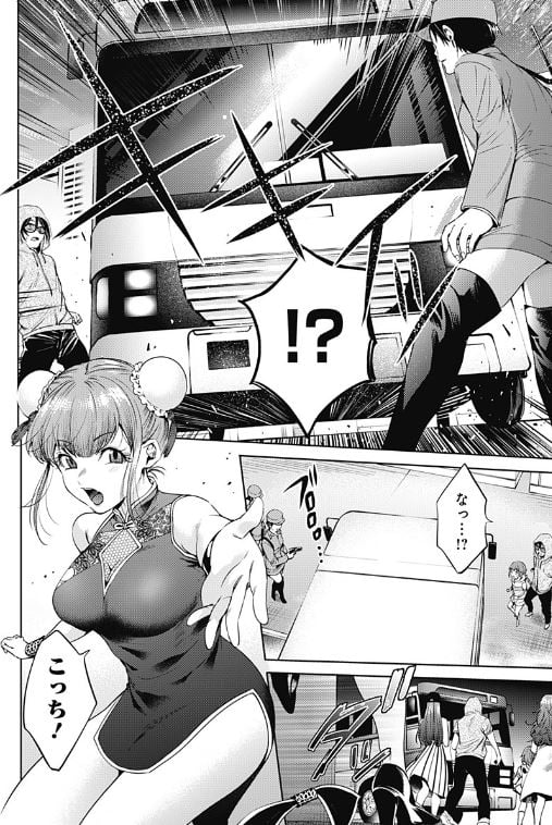 暴走運転で建物に突っ込むわけでもなし、二組の間の壁となったバスに戸惑っていると、路地からエロ過ぎるチャイナ服を着た可愛い子ちゃんが現れ、彼らに来いと促した。