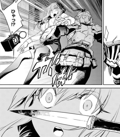 突然の襲撃にゴブリンの侵入かと思った彼がランタンを蹴り滑らせると、2階にいた襲撃者の影が浮かび上がった。
