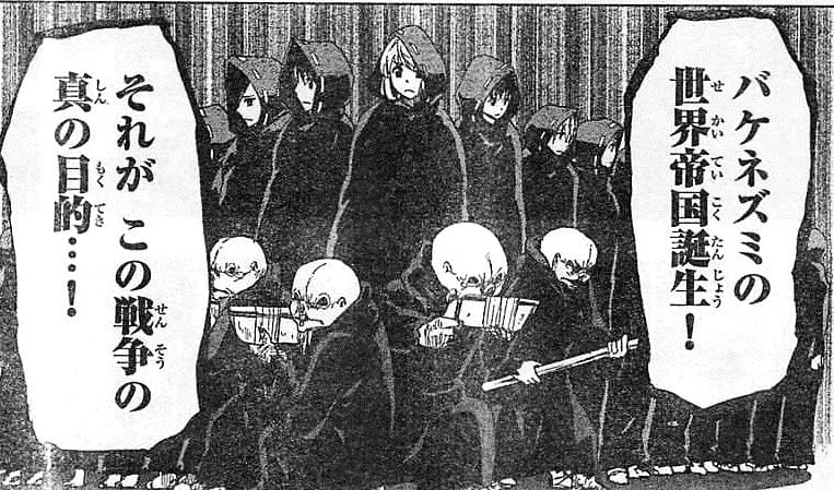 人間の子供を奪い、バケネズミを仲間だと思うよう育て、その呪力を武器にバケネズミを生物の頂点に立たせるつもりなのだ。